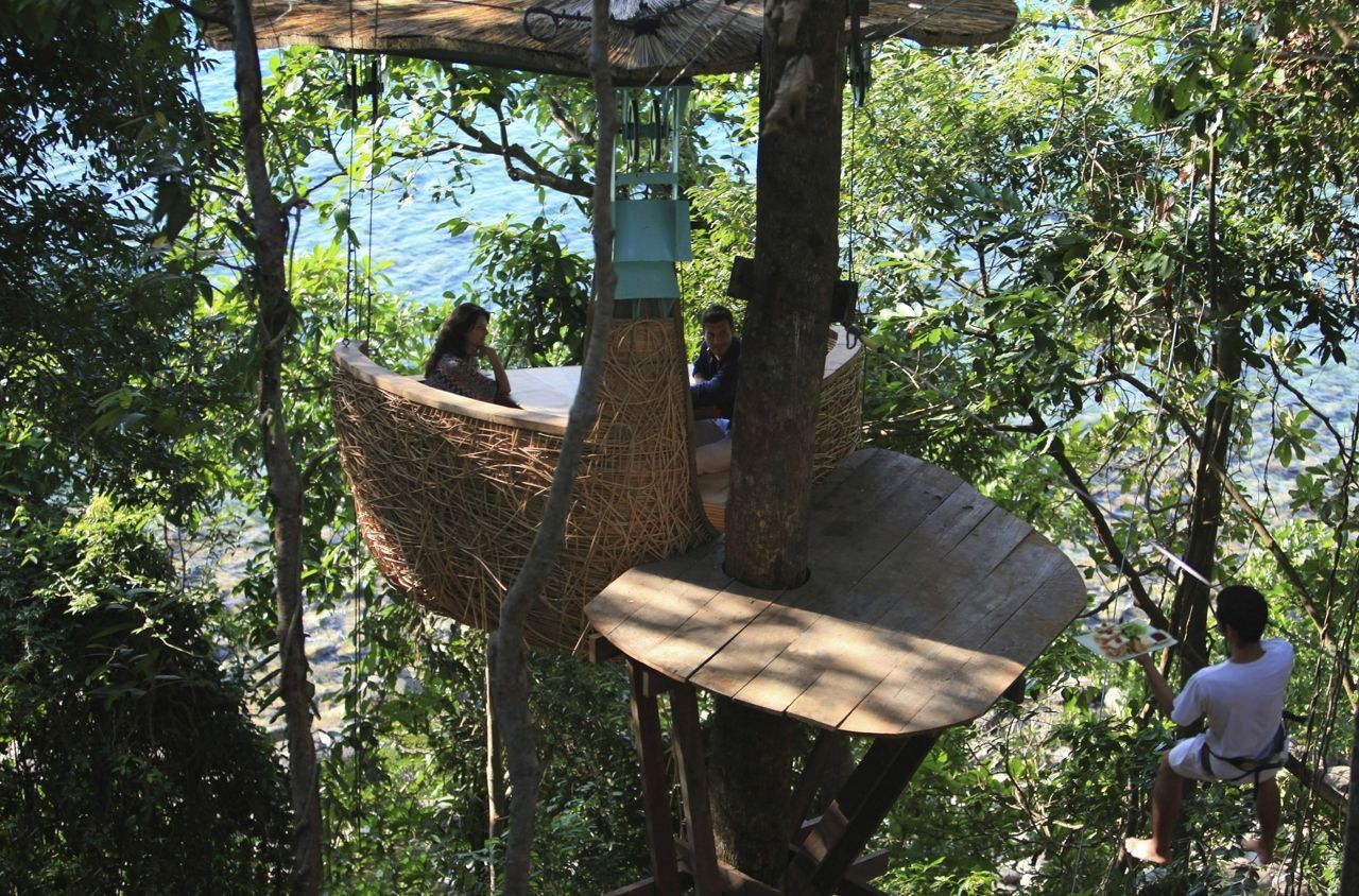 Surrounded by lush vegetation and only a stone’s throw from the marvellous white beach of Koh Kood lies the luxurious destination spa Soneva Kiri. This retreat takes dining on a whole new level: Sit 6 metres above ground level in your private, comfortable bamboo pod which can hold up to four persons and enjoy unreal views of the ocean and the lush rainforest whilst your personal waiter delivers gourmet delights via zip line. It surely is a unique dining experience you will never forget.