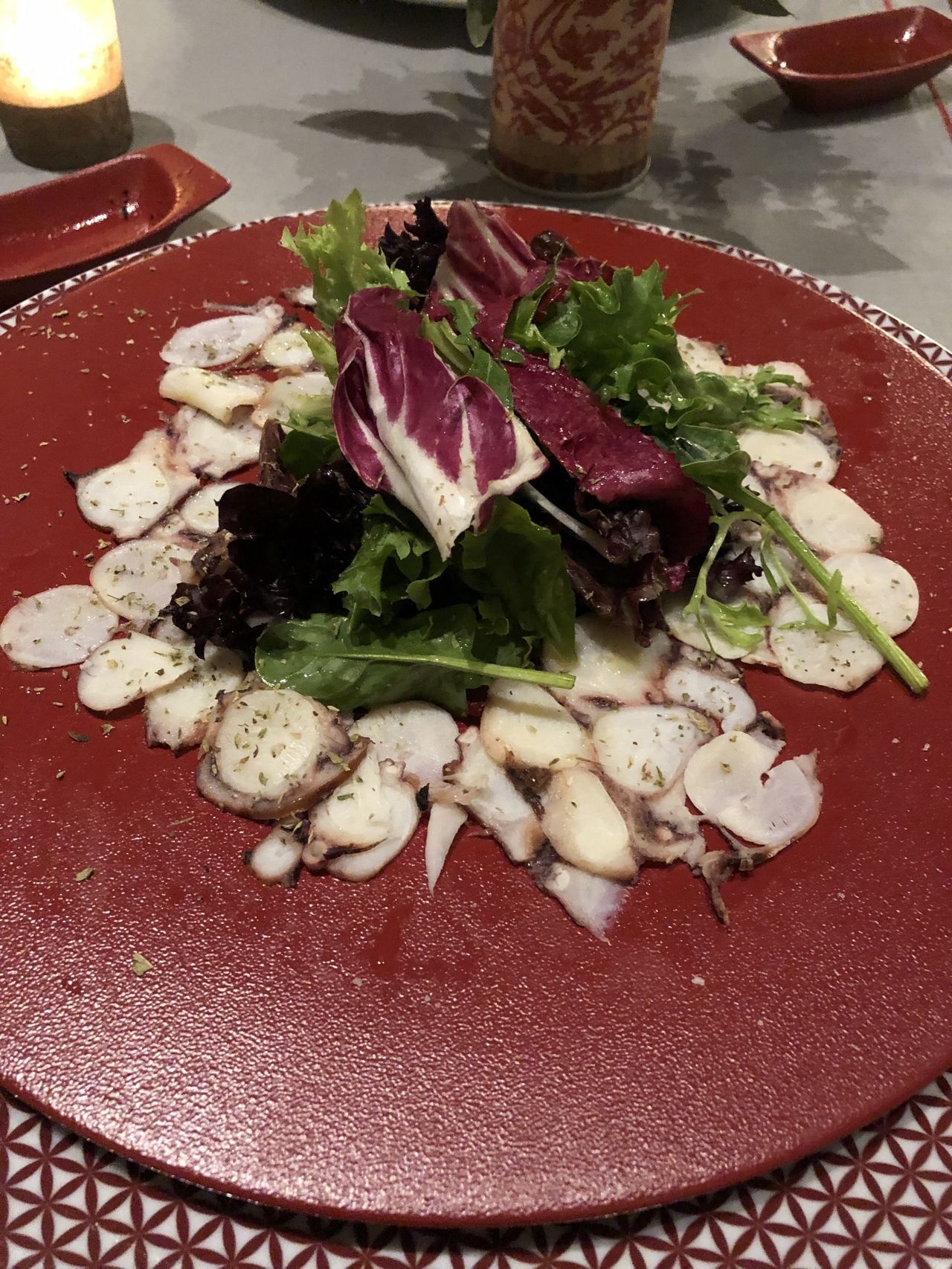 The restaurant is layered with tables of two at the back and lined through the centre with long tables to encourage communal dining for solo travellers. In the sunnier months, there is an outdoor terrace available, overlooking the terracotta roofs and citrus groves.