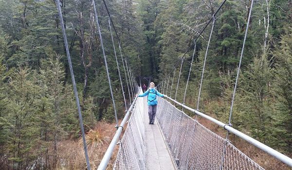 Travel Specialist Samantha on the Routeburn track, one of the Top 10 best treks in the world.