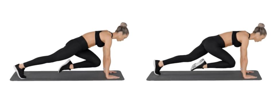Mountain Climbers get your heart rate and work almost every muscle group in the body (deltoids, biceps, triceps, chest, obliques, abdominals, quads, hamstrings and hip abductors). It’s a total body workout in one exercise!