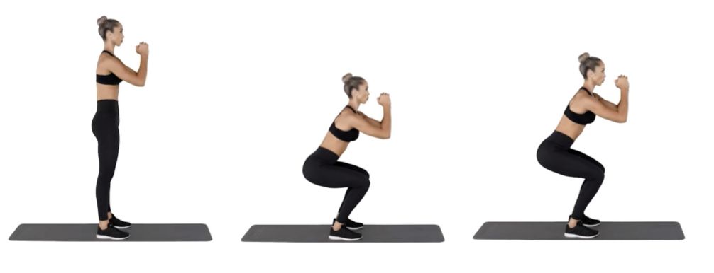 Step 3 – Push through your heels and extend your legs slightly. Bend your knees to return to full squat position.